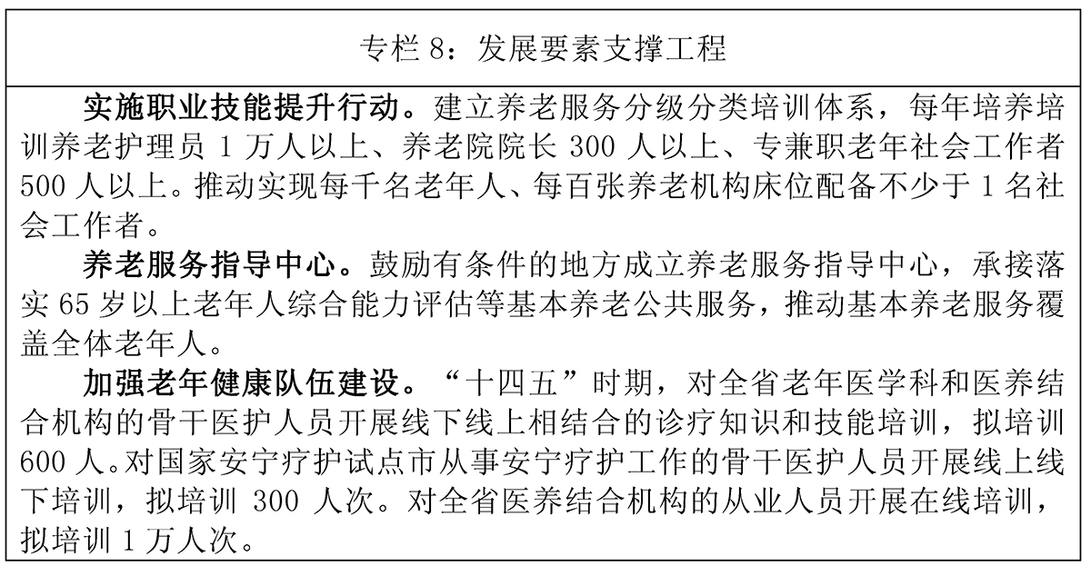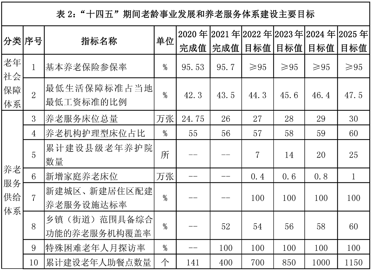 福建省“十四五”老龄事业发展和