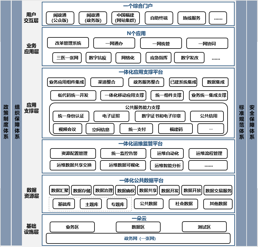 福建数字政府改革和建设实施架构图