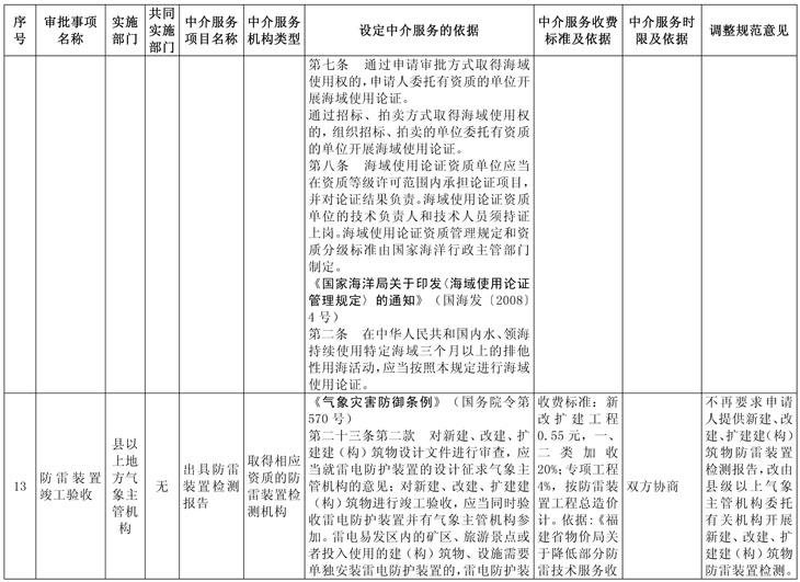附件:福建省调整规范31项省级行政审批中介服务事项目录