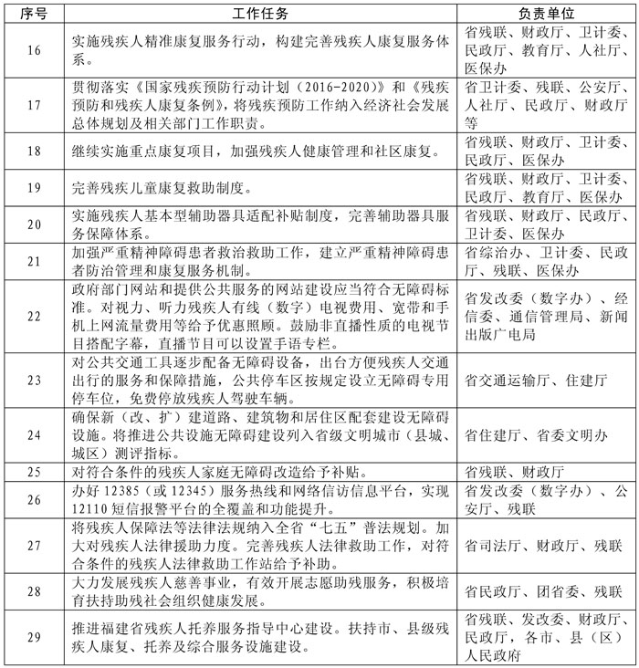 福建省“十三五”加快残疾人小康进程