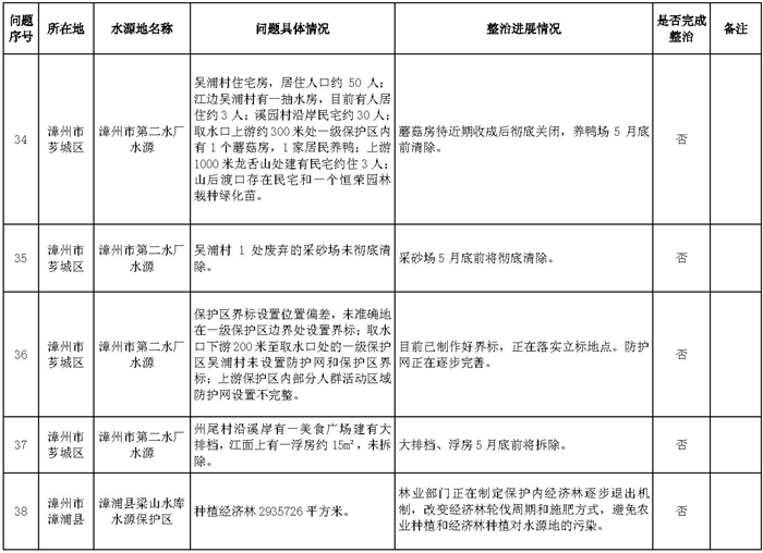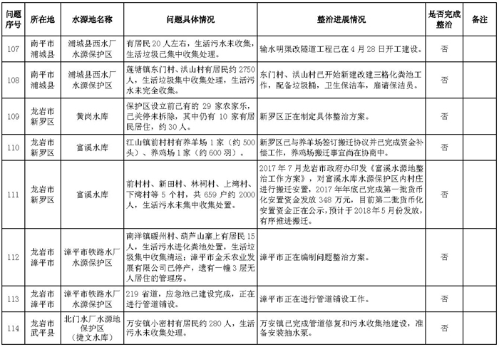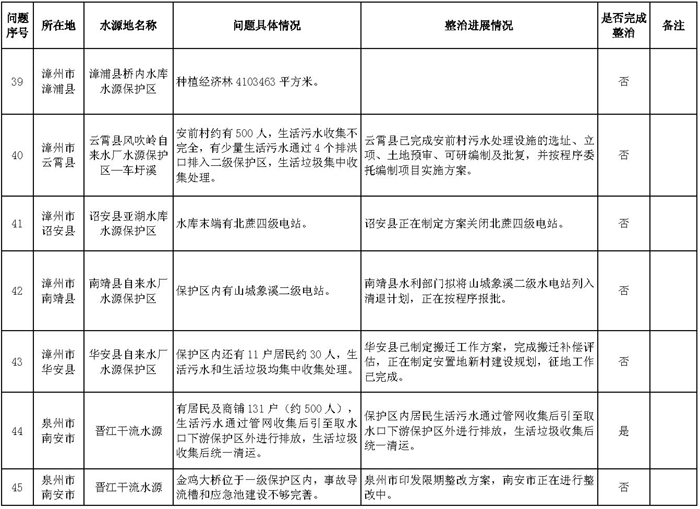 附件:福建省饮用水水源地环境问题清理整治进展情况统计表