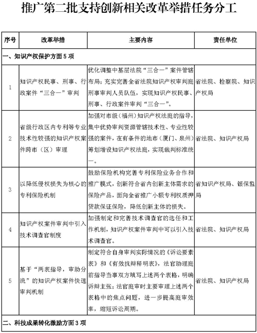 第二批支持创新相关改革举措任务分工的通知