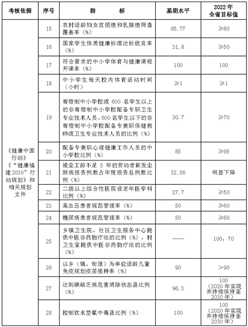 附件:健康福建行动考核指标框架