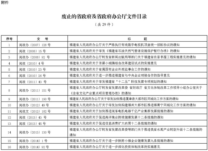 附件:废止的省政府及省政府办公厅文件目录(共29件)