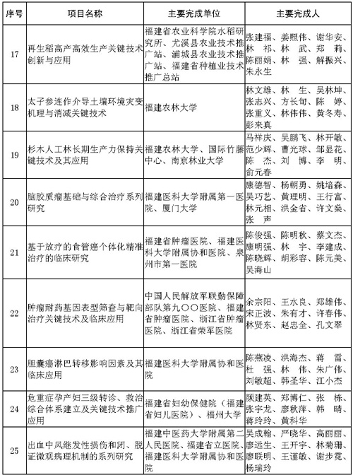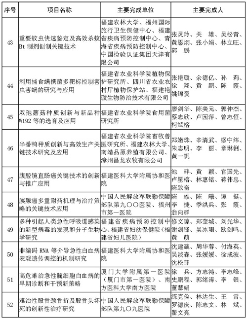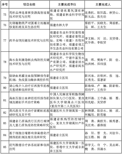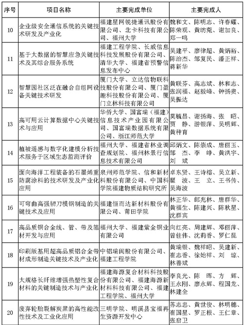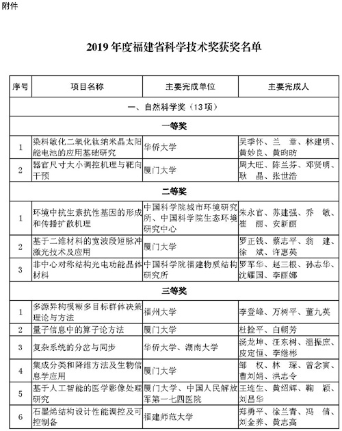 为深入贯彻习近平新时代中国特色社会主义思想和党的十九大和十九届二中、三中、四中、五中全会精神,大力实施创新驱动发展战略,营造有利于创新创业创造良好发展环境,鼓励科技成果转移转化,根据《福建省科学技术奖励办法》的有关规定,省科学技术奖励委员会组织对2019年度福建省科学技术奖进行评审,经省委研究,省政府决定对2019年度在科学技术进步活动中作出重要贡献的科学技术人员和组织给予奖励,为获奖者颁发奖状、证书和奖金。具体如下: