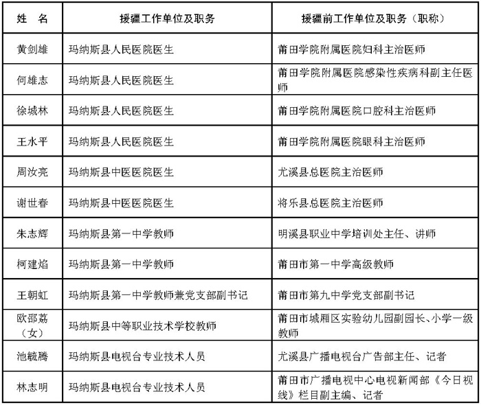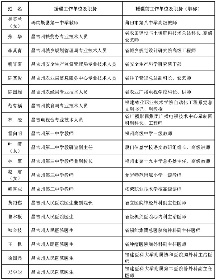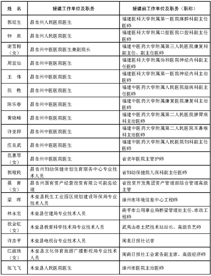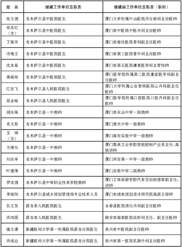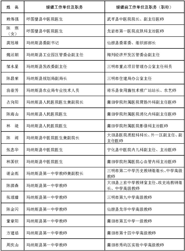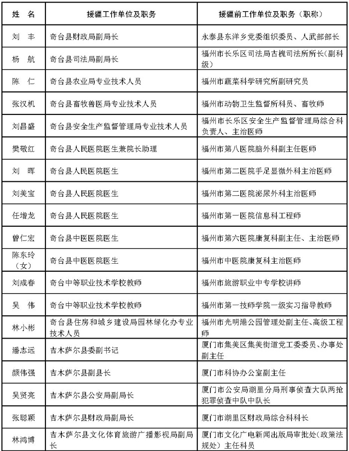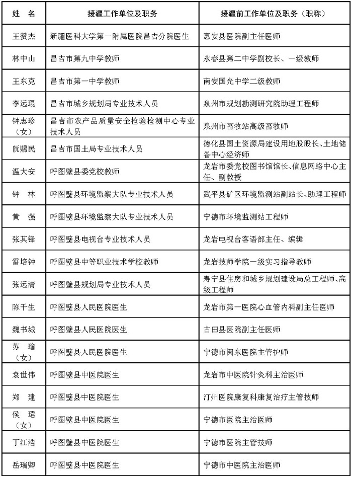 附件:1.福建省第七批援疆工作队人员名单(共302人)