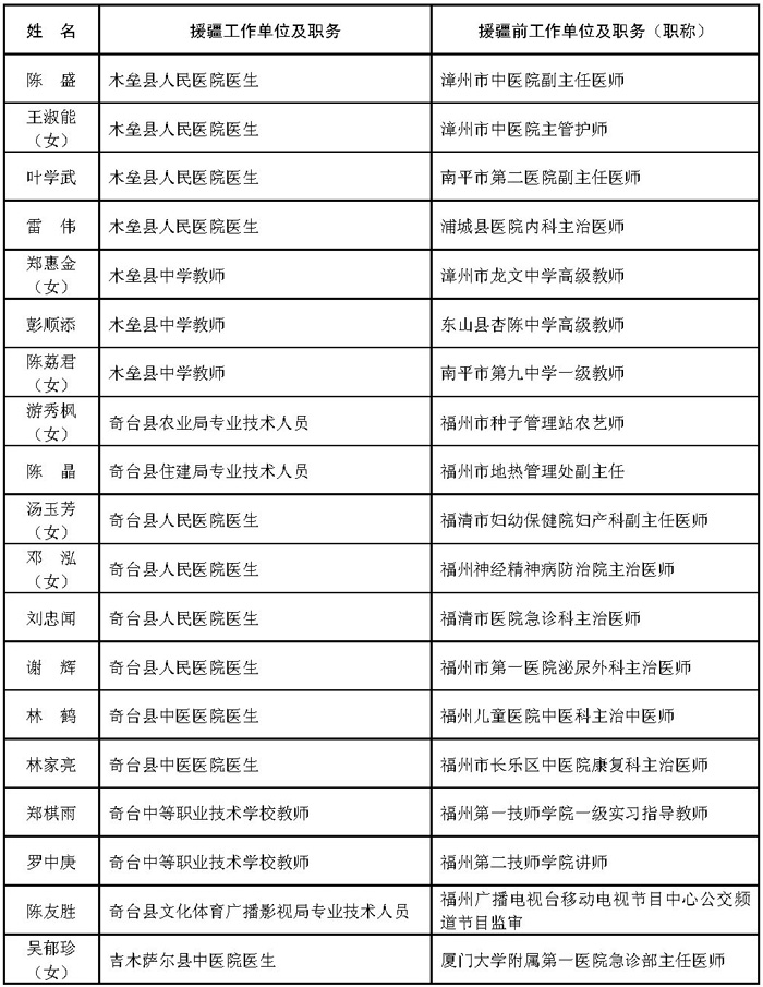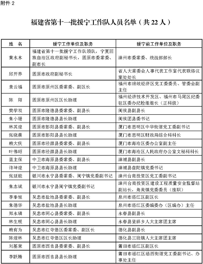 2.福建省第十一批援宁工作队人员名单(共22人)