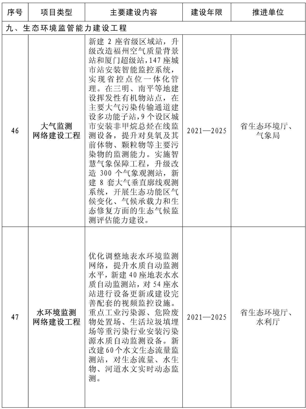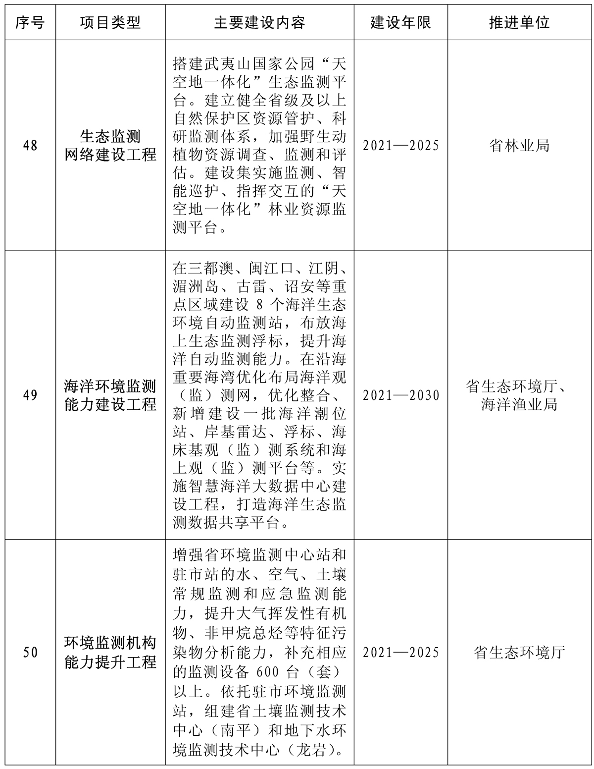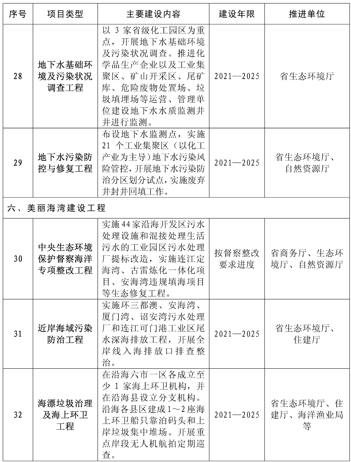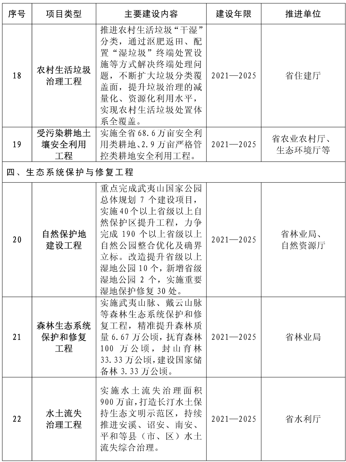 锚定2035年生态福建美丽福建建设目标,围绕建设践行习近平生态文明思想先行示范区和美丽中国示范省份,落实党中央碳达峰、碳中和决策部署,一手抓环境治理加强生态保护修复,一手抓体制机制创新激发内生动力,推动由相对偏重简单粗放治理向更加精准、科学、依法治理转变,由偏重单一环境要素治理向更加系统、集成、综合治理转变,由偏重末端治理向更加注重源头、绿色、低碳转变。实施蓝天、碧水、碧海、净土四大工程,推进美丽城市、美丽乡村、美丽河湖、美丽海湾、美丽园区建设,为建设美丽福建开好局、起好步。