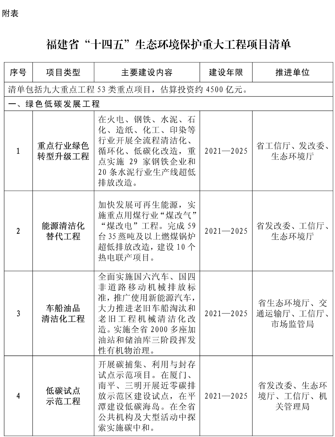 《福建省“十四五”生态环境保护专项规划》已经省政府研究同意,现印发给你们,请认真组织实施。
