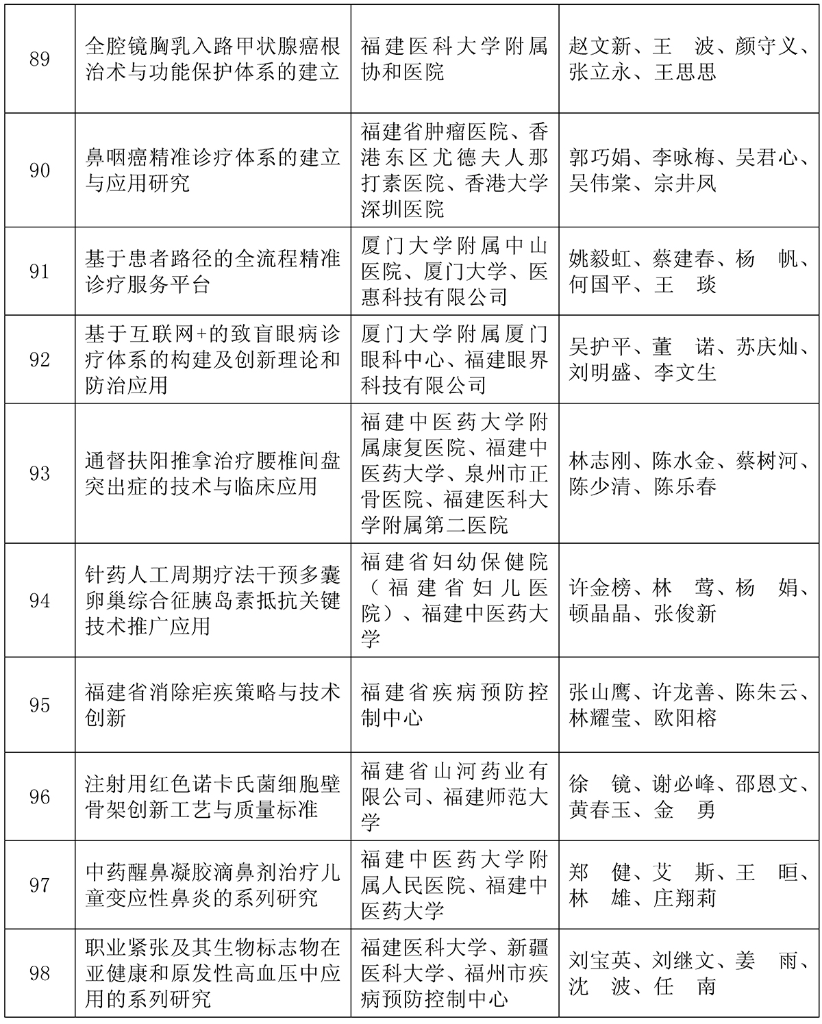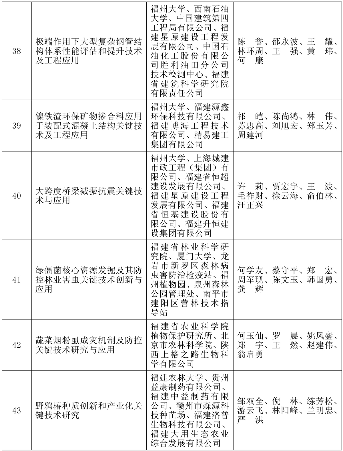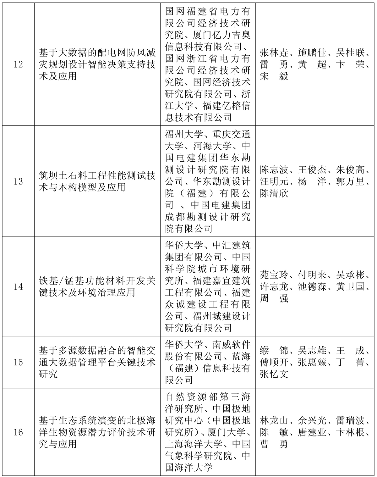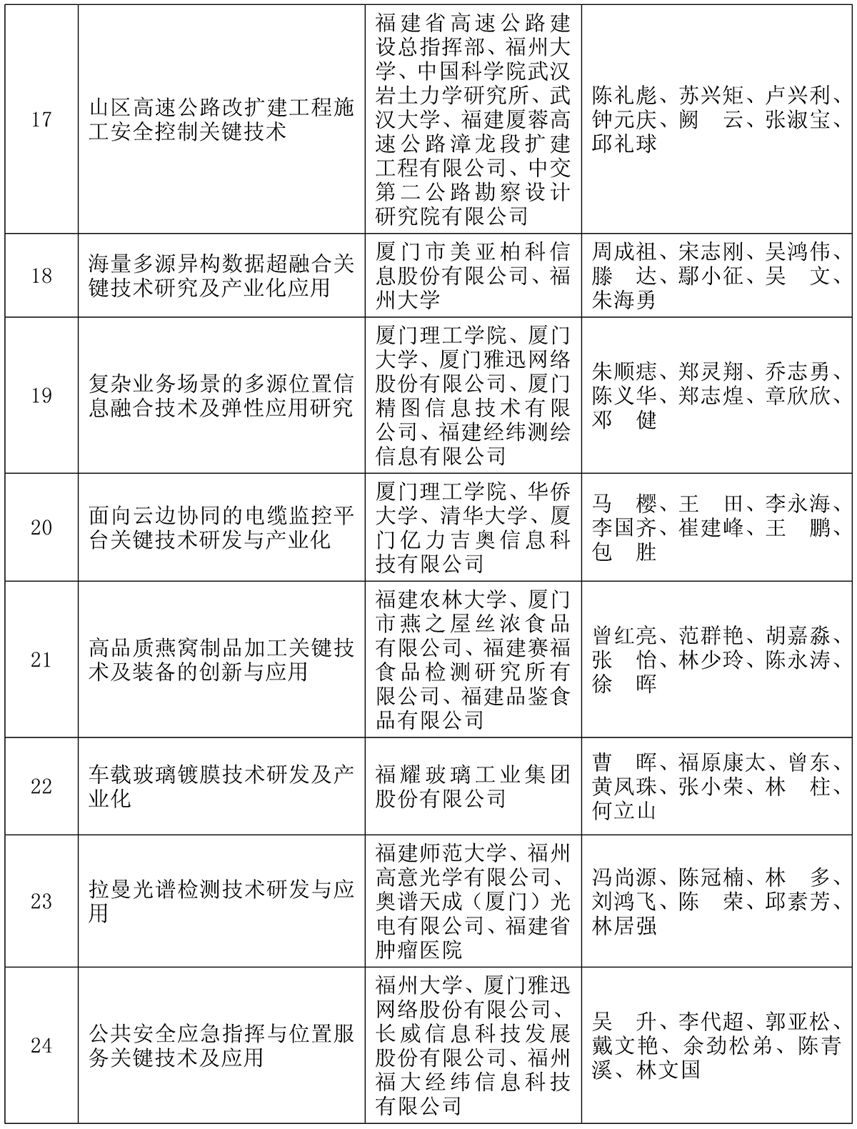 三、授予“超高清视频智能处理关键技术研发及产业化”等22项成果福建省科学技术进步奖一等奖,授予“自主可控的大功率电能变换装备关键共性技术研究及产业化”等53项成果福建省科学技术进步奖二等奖,授予“省地一体化电力监控系统网络安全防御体系关键技术及应用”等98项成果福建省科学技术进步奖三等奖。