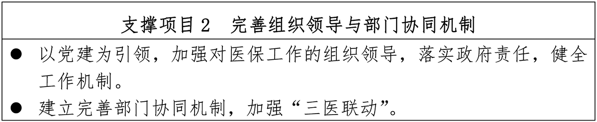 切实加强对医保工作的组织领导,落实政府在制度、规划、筹资、服务和监管等方面的责任,把医保制度改革作为重要工作任务,结合实际制定切实可行的政策措施,健全工作机制,将落实医保制度改革纳入保障和改善民生的重点任务,确保规划目标如期实现。建立完善部门协同机制,加强医疗、医保、医药制度政策之间的统筹协调和综合配套。根据职责分工,细化分解规划各项任务目标,各司其职,密切配合,加强衔接,共同推进医保规划实施。