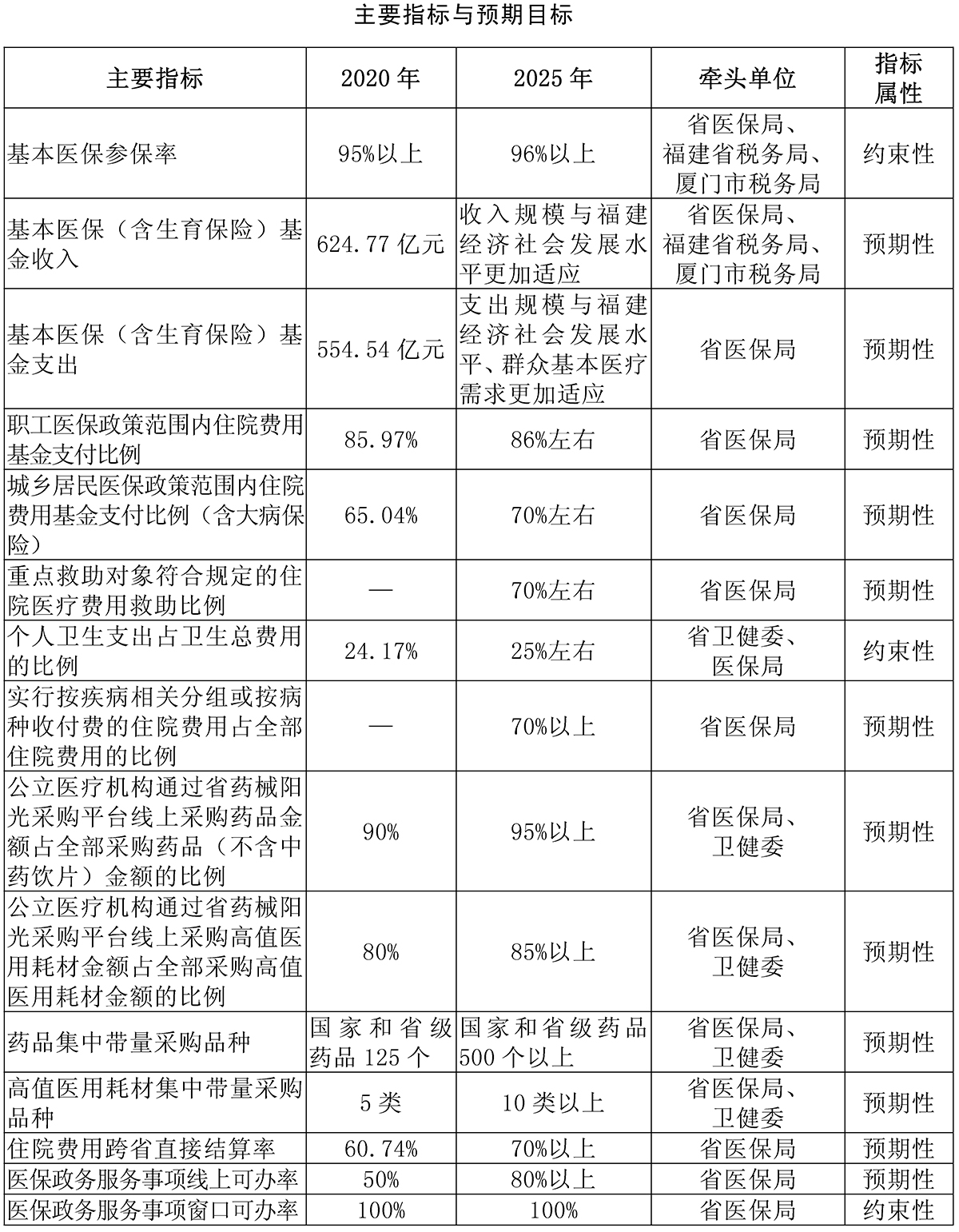 到2025年,基本完成待遇保障、筹资运行、医保支付、基金监管等重要机制和医药服务供给、医保管理服务等关键领域的改革任务,医疗保障政策规范化、管理精细化、服务便捷化、改革协同化程度明显提升,努力实现以下主要目标: