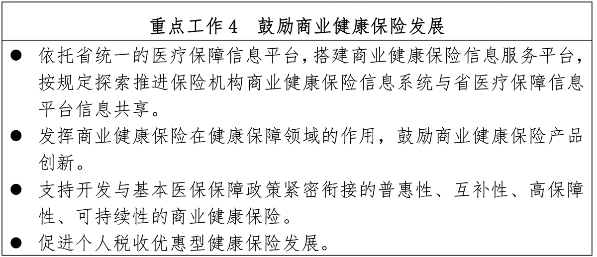 完善商业健康保险支持政策。支持商业保险机构开发与基本医保政策紧密衔接的普惠性、互补性、高保障性、可持续性的商业健康保险,满足群众多样化医保需求。按照国家关于加强网络安全和数据保护工作的规定,在确保参保人数据信息安全的前提下,为商业健康保险开发提供政策上的引导扶持和必要的数据支持,按规定探索推进保险机构商业健康保险信息系统与省医疗保障信息平台信息共享和“一站式”结算。