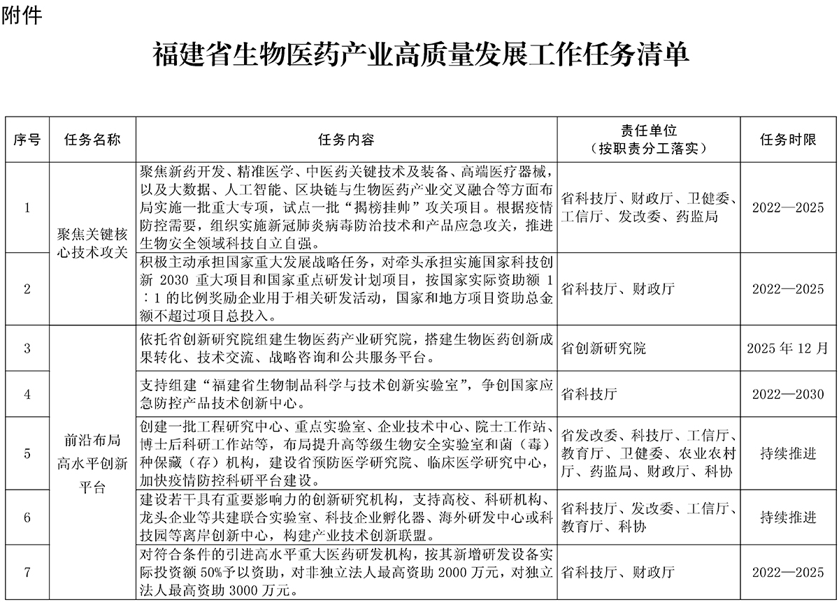 附件:福建省生物医药产业高质量发展工作任务清单